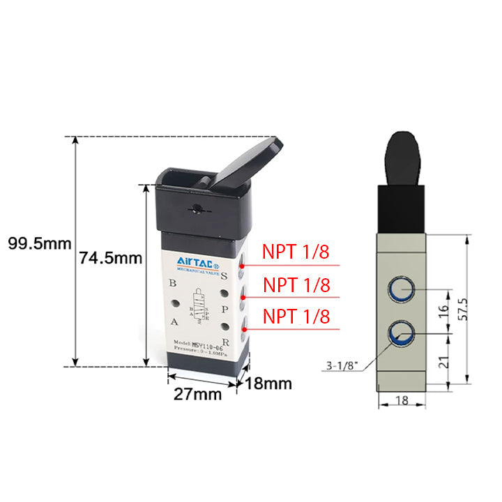 Structure: M type five two,Specifications: Rocker Arm Type Manual Valve,Series: 100 series single control,Nozzle caliber: 1/8",Tooth type: NPT tooth,