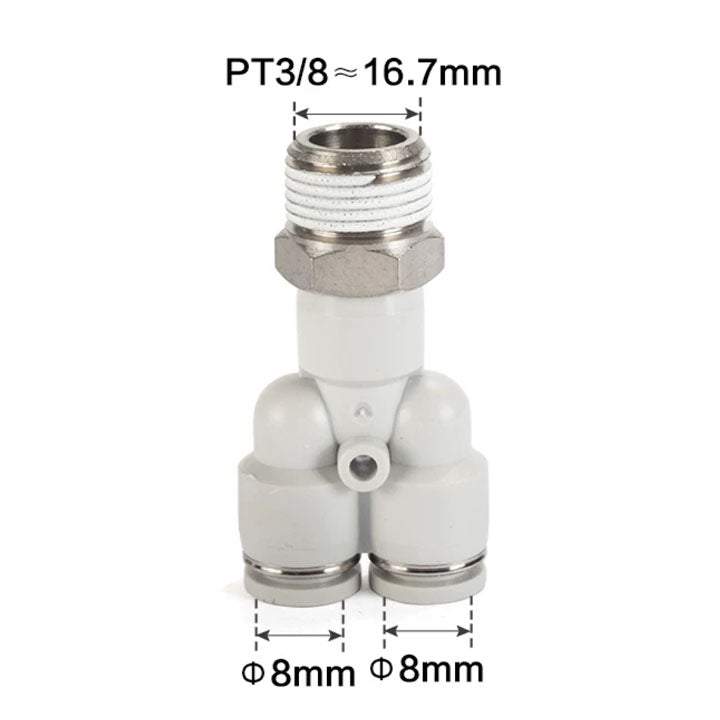 Specification: Y-type threaded tee,Nozzle caliber: ø8mm,Connection thread: PT3/8,Color: black (interface: black/body: black),Tooth type: PT tooth,Material: stainless steel 304,Click to download... Read more