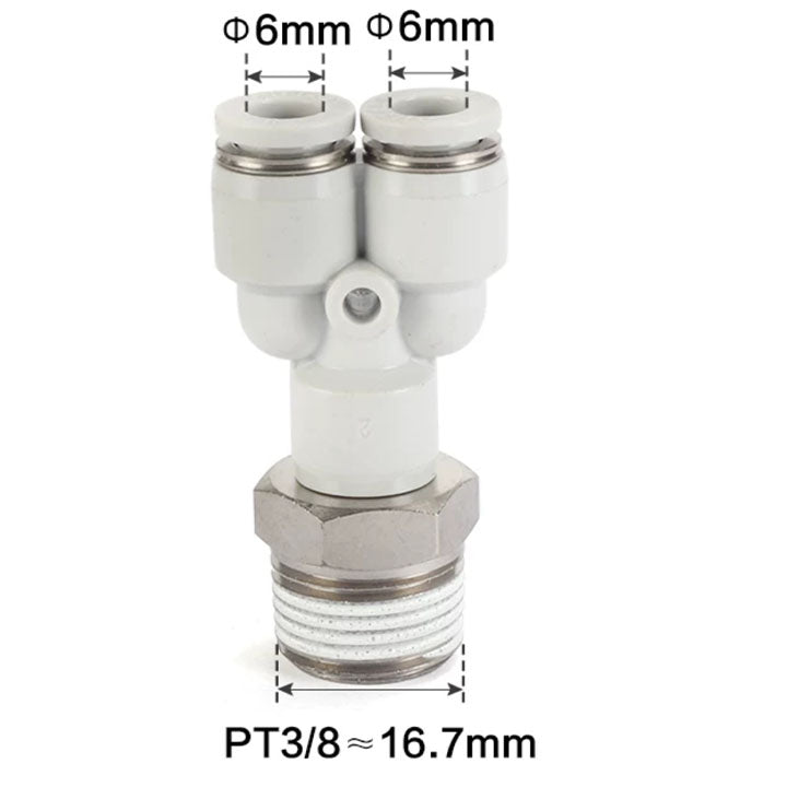 Specification: Y-type threaded tee,Nozzle caliber: ø6mm,Connection thread: PT3/8,Color: gray (interface: gray/body: gray),Tooth type: PT tooth,Material: stainless steel 304,Click to download... Read more