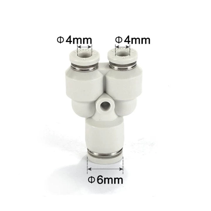 Specification: Y-type reducing tee,Nozzle caliber I: 酶6mm,Nozzle caliber II: 酶4mm,Color: gray (interface: gray/body: gray),